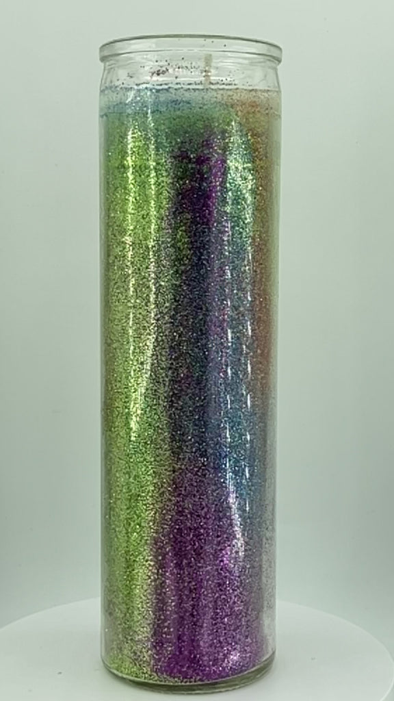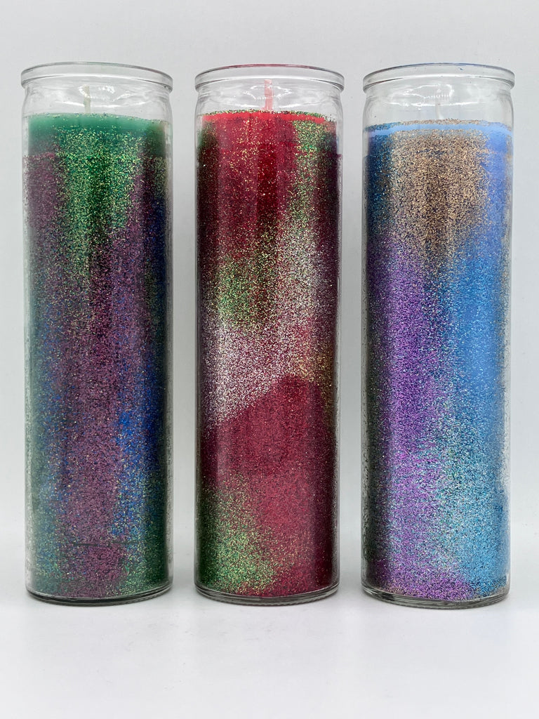 These new GLITTER candles are proving to be the hottest sellers in recent memory. Not only are they incredibly beautiful, unique, and powerful, but they are TRIPLE STRENGTH sure to work with great speed and surety for ANYTHING you wish to draw to yourself or into your life. Since these are designed by hand by artisans interested in the interplay color has with our energies, no two are alike. Please allow us to choose one for you. You will not be disappointed, but rather enchanted and thrilled with the results.