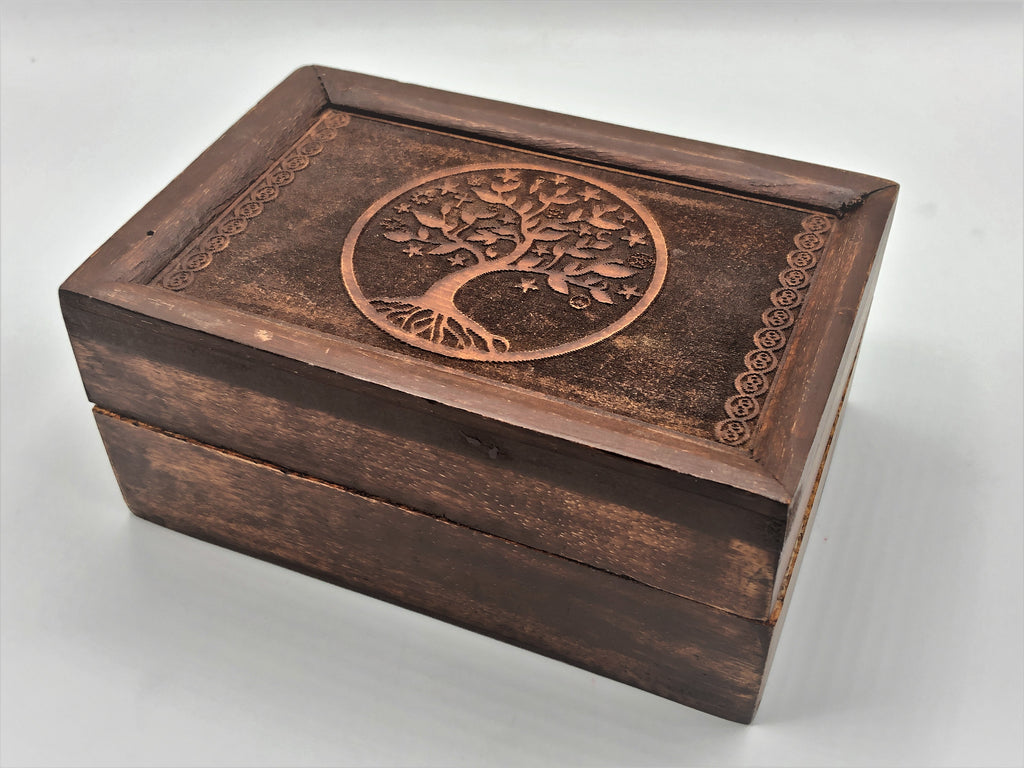 These are hand-carved cedar wood boxes 4" x 6" which are perfect to hold your spiritual treasures such as petitions, seals, prayer cards, medallions, charms, or talismans in a discrete and safe method. This is a beautiful addition to an altar or simply near your bedside or in a private drawer.